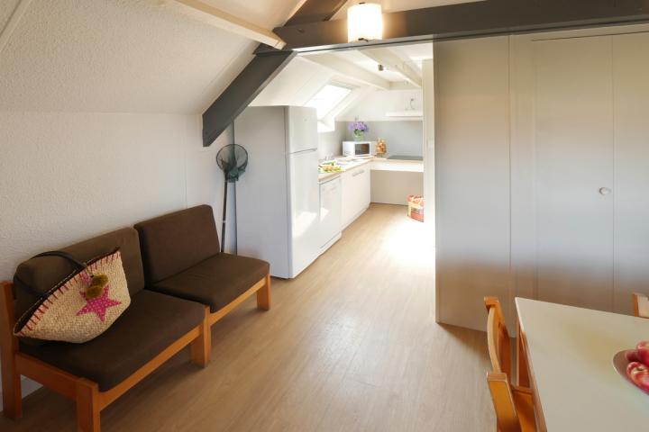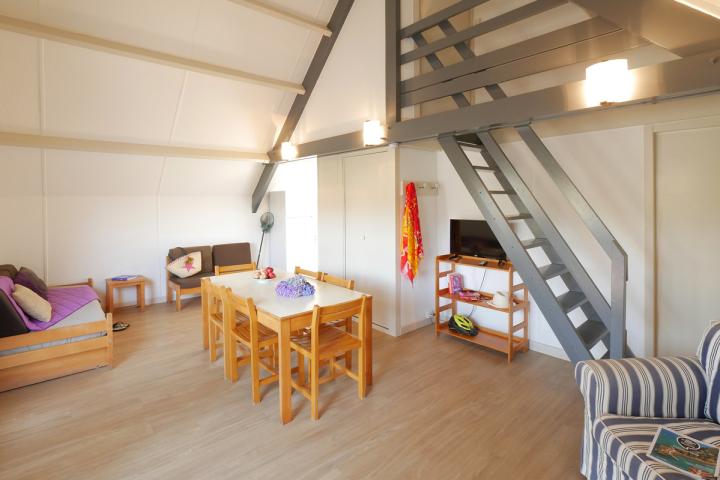 • T5 : séjour avec canapé-lit, 1 chambre avec 1 lit double et 1 chambre avec 2 lits simples