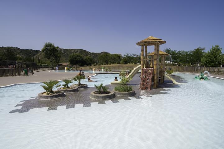 - Parc aquatique : 2 piscines extérieures non chauffées avec Pentagliss et solarium, 1 bassin aqualudique avec mini-toboggans et jets d'eau pour enfants