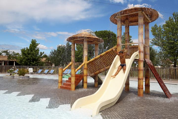 - Parc aquatique : 2 piscines extérieures non chauffées avec Pentagliss et solarium, 1 bassin aqualudique avec mini-toboggans et jets d'eau pour enfants
