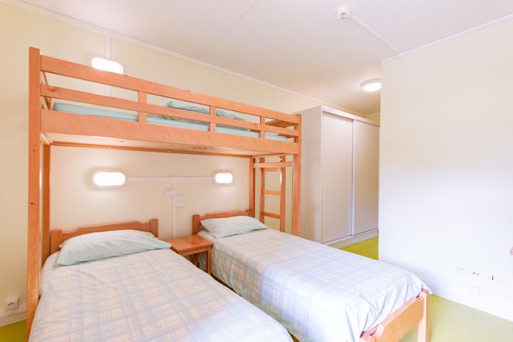 • T3 : 2 lits simples et 1 lit en hauteur ou 1 lit superposé et 1 lit simple